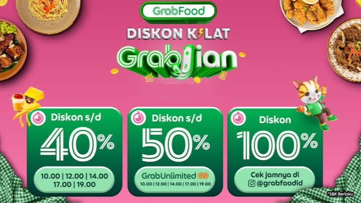 jateng: diskon ekstra 40% untuk pesan di semua resto pakai kode grabfood minimum belanja: rp 35.000 tanggal kedaluwarsa: 16/06/2024