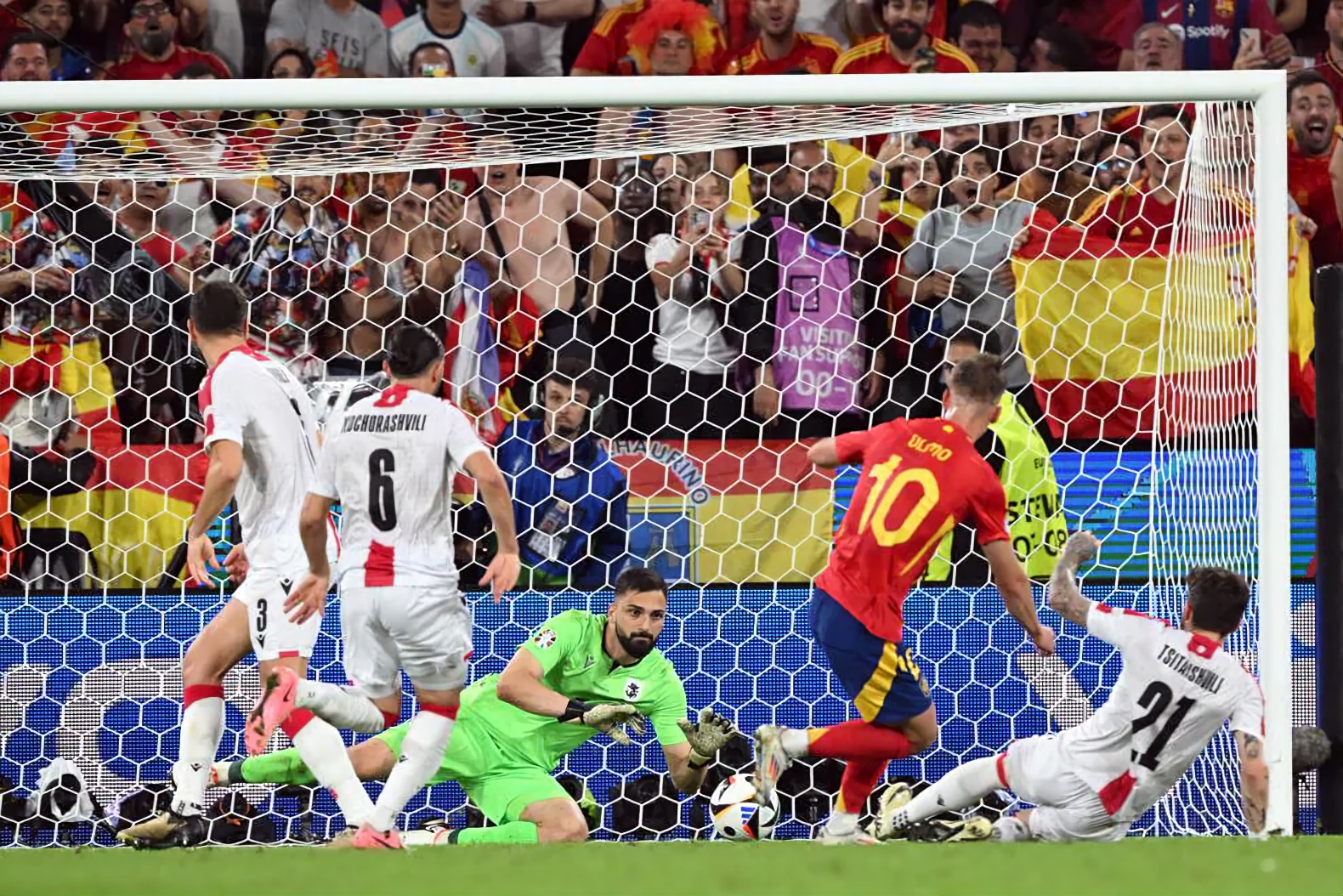 gerogia menjadi korban keganasan timnas spanyol. dalam pertandingan babak 16 besar euro 2024 yang berlangsung di cologne stadium senin dini hari (1/7), spanyol menyikat georgia dengan skor 4-1 (1-1).