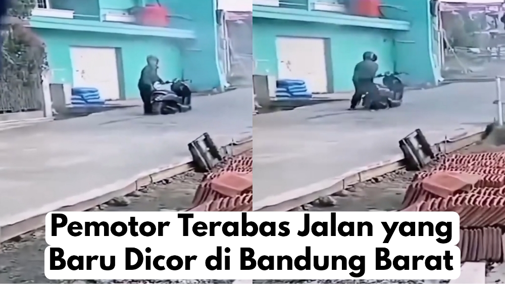 BACAKORAN.CO - Seorang pemotor nekat melintasi jalan baru yang masih basah di Kampung Panyairan Jompo, RT 3/2, Desa Cigugur Girang, Kecamatan Parongpong, Kabupaten Bandung Barat (KBB), pada pagi hari Selasa (2/7/2024).