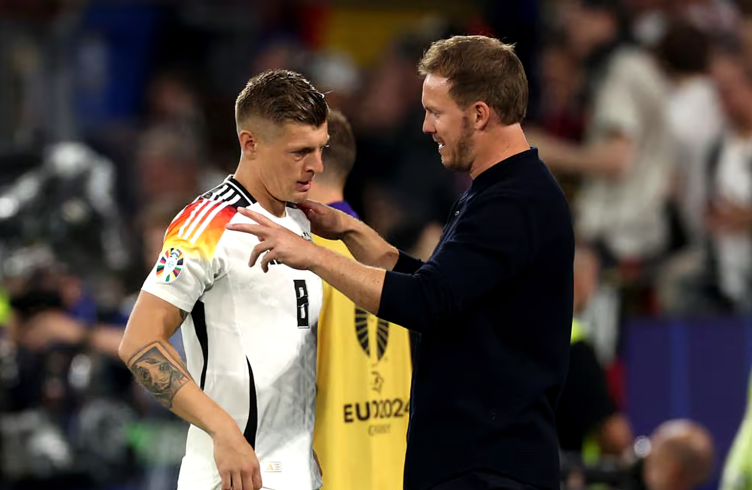 toni kroos saat menerima arahan dari pelatih timnas jerman julian nagelsmann-euro 2024-