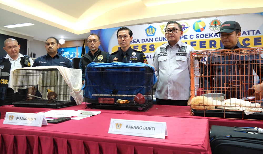 Tim gabungan dari Bea Cukai, Aviation Security, dan Balai Konservasi Sumber Daya Alam (BKSDA) Jakarta mengamankan barang bukti satwa yang disita dari pelaku meliputi dua ekor burung Cenderawasih dan satu ekor berang-berang.