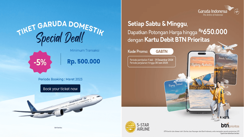 kode promo tiket pesawat khusus garuda indonesia dapat diskon rp1 juta off.