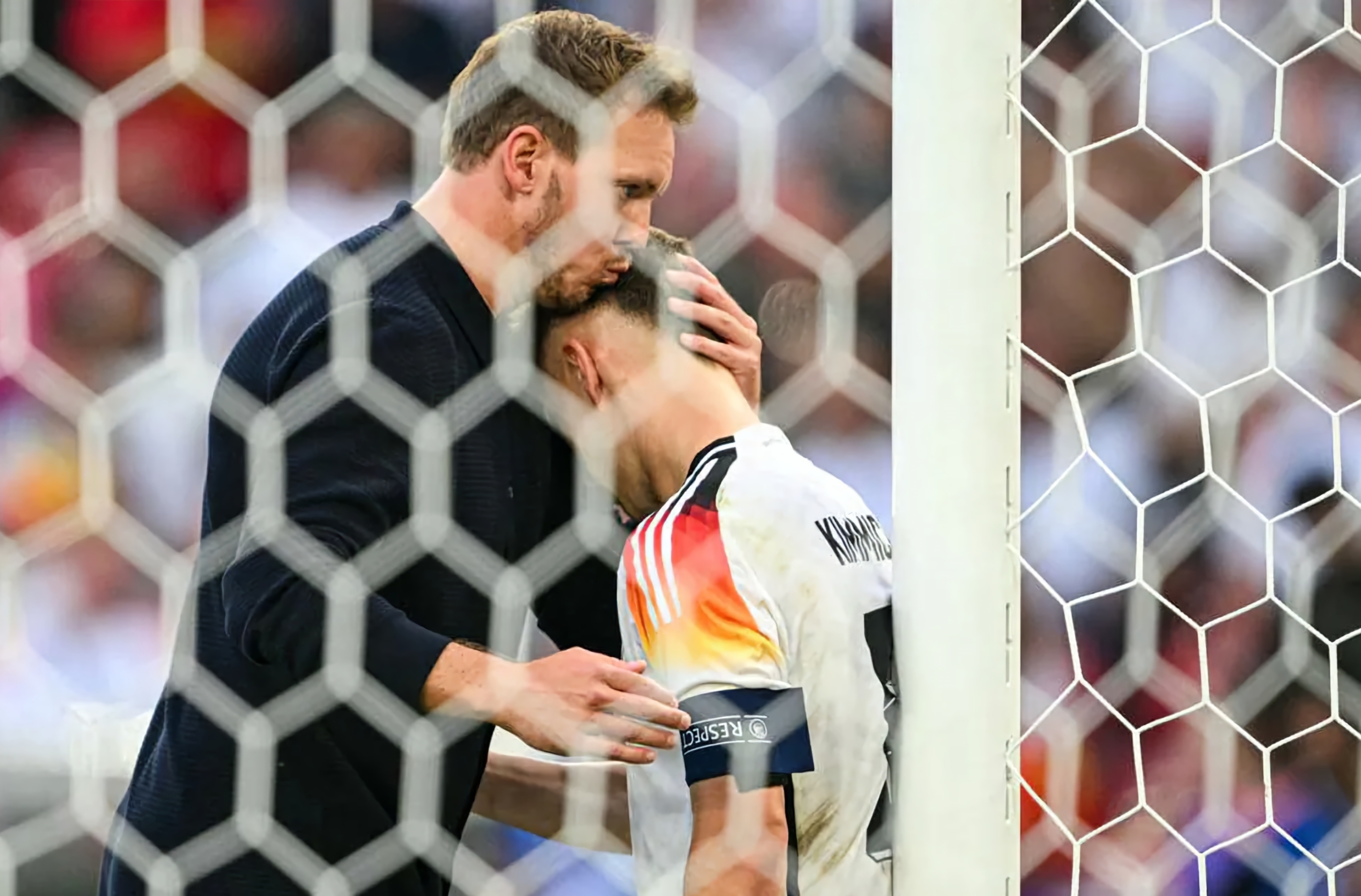 pelatih jerman julian nagelsmann harus menenangkan anak asuhnya usai gagak melaju ke semifinal euro 2024 -euro2024-