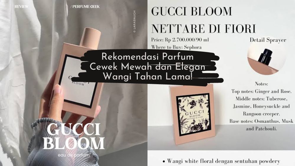 gucci bloom eau de parfum memiliki aroma bunga yang memukau, cocok untuk acara formal, dan memiliki kelebihan tahan lama antara 4-6 jam.