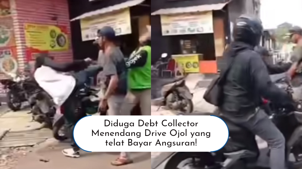diduga aksi itu terjadi karena driver ojol tersebut telat membayar angsuran kemudian sang debt collector menendang wajahnya dan viral di sosial media.