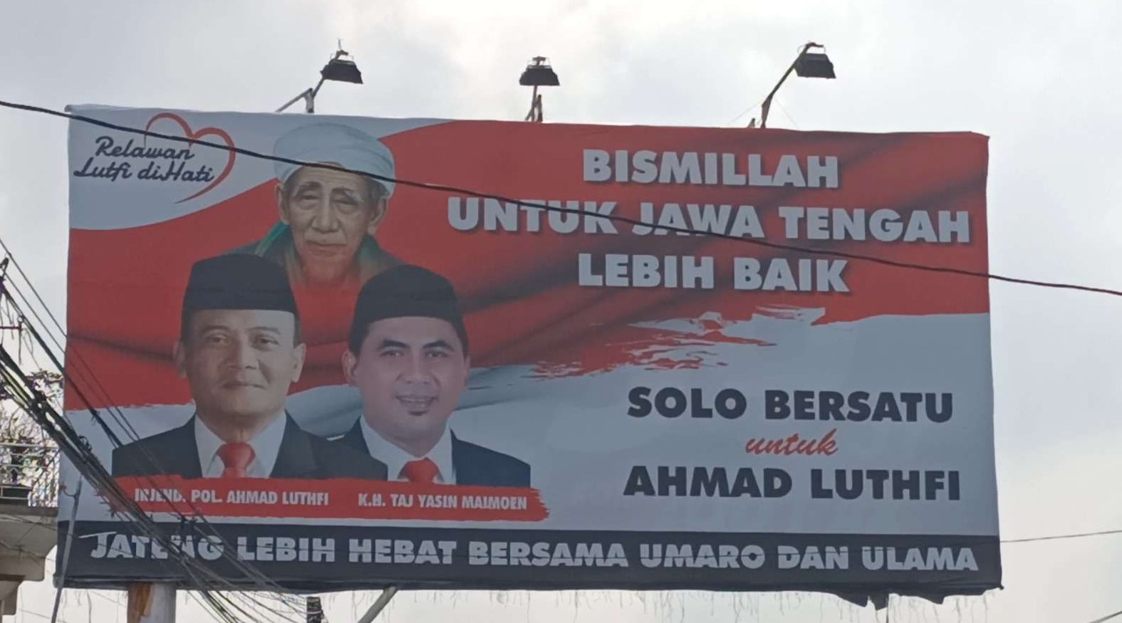 Tiga partai dari KIM yakni Golkar, PAN dan Gerindra memberikan dukungan kepada Ahmad Luthfi di Pilkada Jawa Tengah (Jateng) 2024. Tampak baliho Ahmad Luthfi berpasangan dengan Taj Yasin.--istimewa