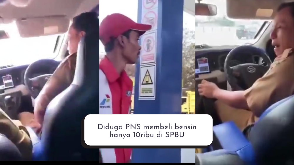 Video yang terupload di akun X @heraloebss memperlihatkan empat orang dalam mobil tersebut yang diduga PNS membeli bensin sebesar 10 ribu pada petugasnya.