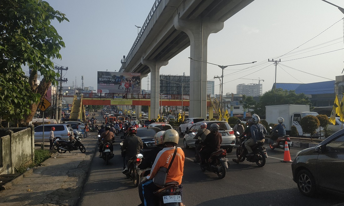Hanya terjadi perlambatan laju kendaraan di dekat BTN dan lampu merah Simpang Polda.