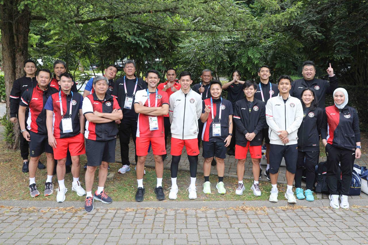 Tim Indonesia cabang olahraga bulu tangkis saat mau masuk Perkampungan atlet Olimpiade Paris 2024-pbsi-