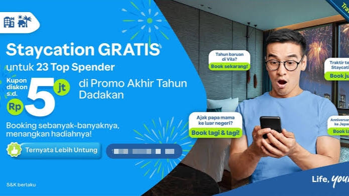 BACA JUGA:12 Kode Voucher Traveloka Khusus Hari ini, Diskon Rp1 Juta Booking Hotel, Tiket Bus Rp100 Ribu