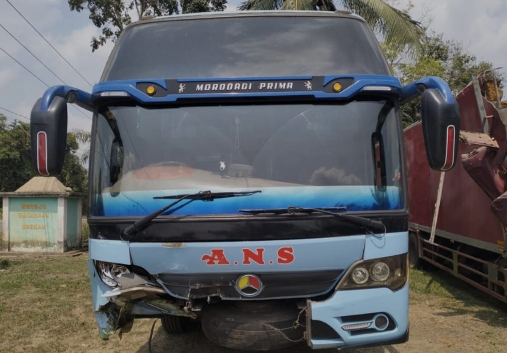Penampakan Bus ANS usai hantam mobil daihatsu Xenia pada senin (29/7/2024)--Ist