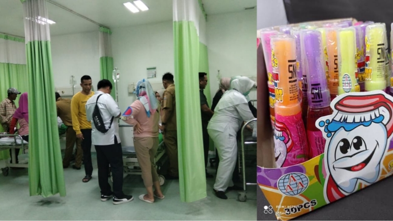 5 siswa SD Negeri 39 Palembang dilarikan ke rs bunda usai mendadak muntah diduga keracunan permen semprot pada senin (29/7/2024)--dok: Sumeks.co/lazada