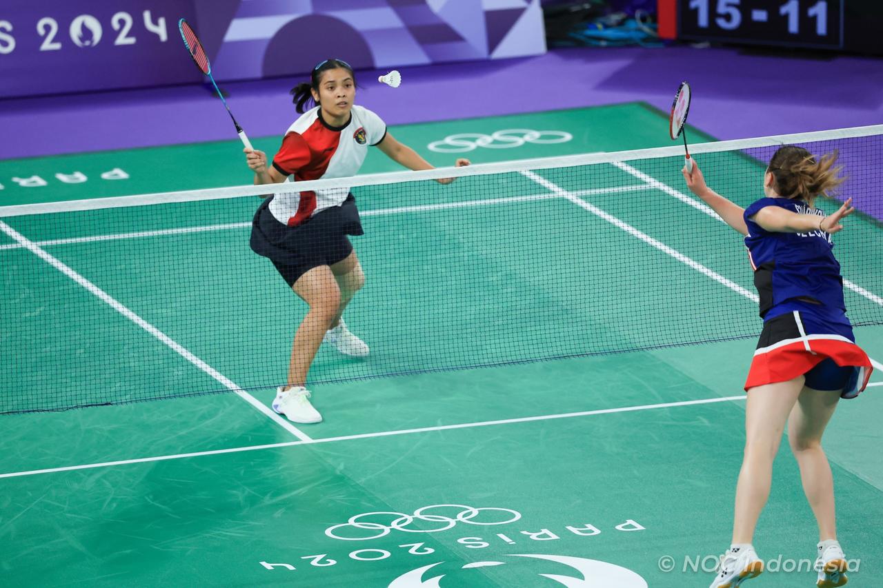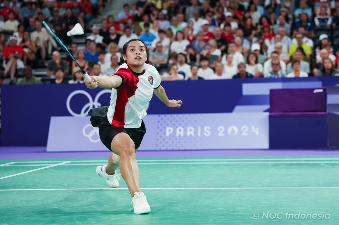 BACAKORAN.CO - Gregoria Mariska Tunjung menjaga kans Indonesia untuk meraih medali di Olimpiade Paris 2024 dari cabang olahraga bulu tangkis.