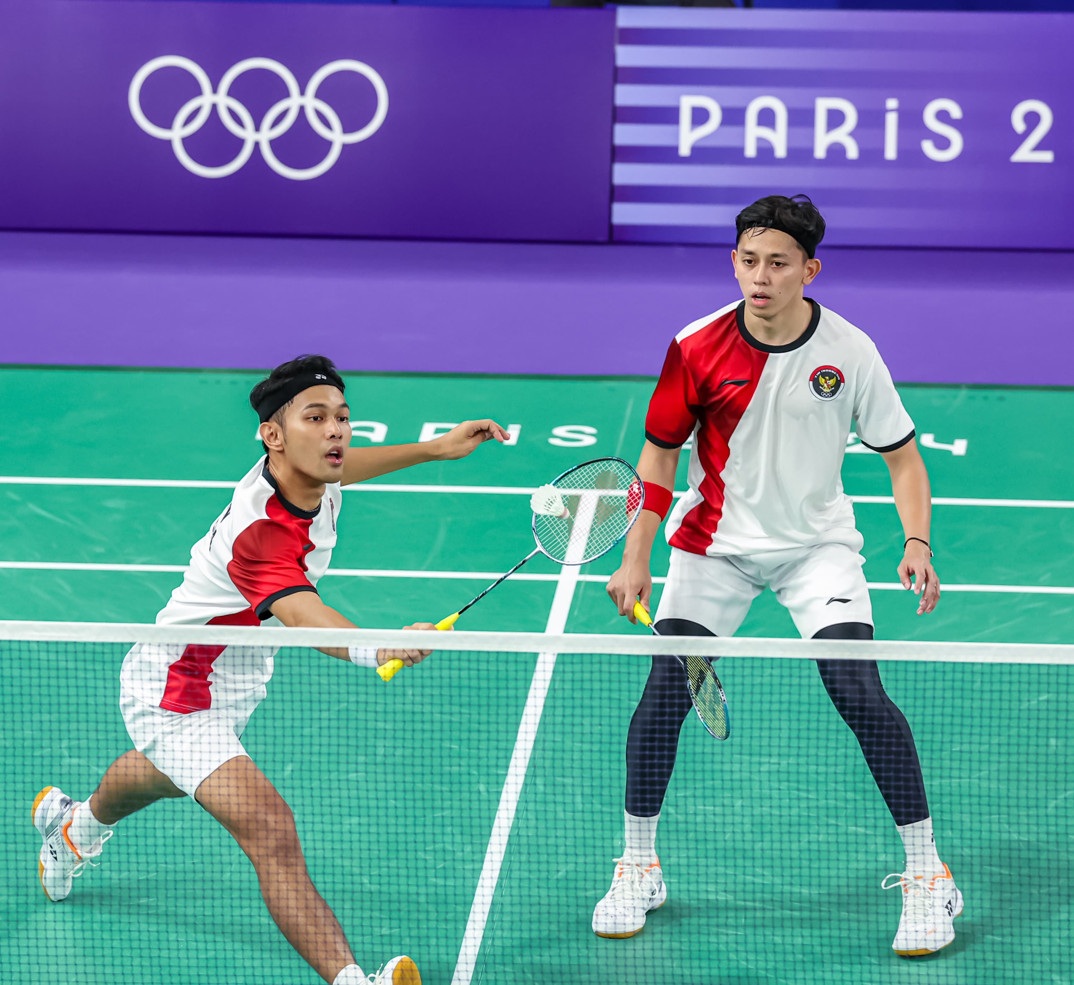Dalam pertandingan yang berlangsung di Porte de La Chapelle Arena, Paris itu, Kamis (1/8), itu, pasangan Indonesia kalah dengan kedudukan 22-24, 20-22.