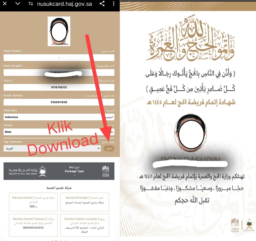 SERTIFIKAT HAJI : Jemaah Haji tahun 1445 H/2024 M bisa download dan cetak sendiri sertifikat haji 2024. (foto: olah digital)--