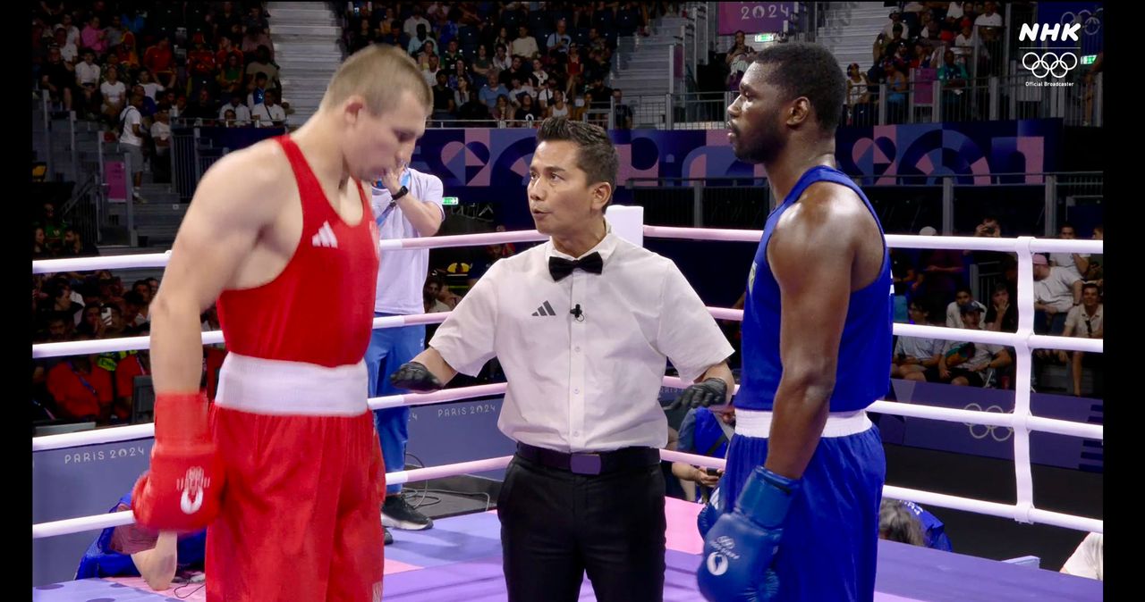 Boy Pohan untuk kali kedua pimpin pertandingan tinju di Olimpiade setelah di Olimpiade Tokyo. -NOC Indonesia-