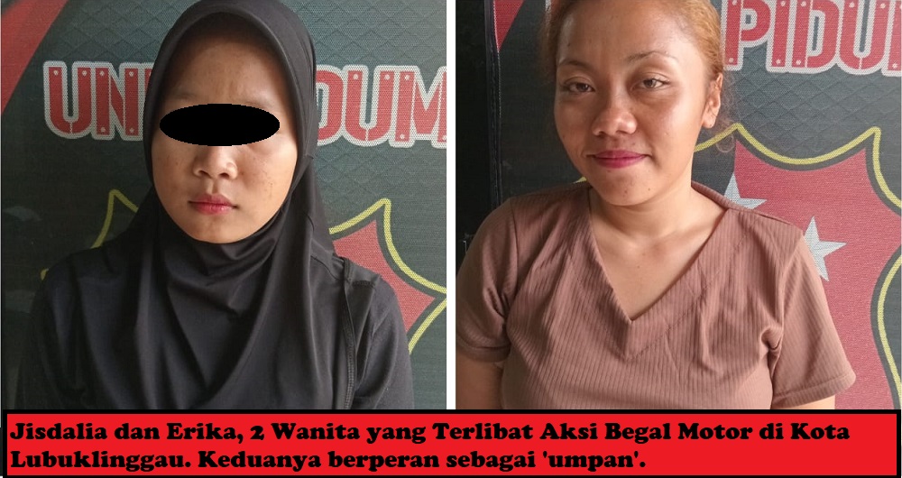 BACAKORAN.CO - 2 Wanita di Kota Lubuklinggau, Sumatera Selatan diduga terlibat aksi begal motor bersama 3 pria yang kini masih buron.