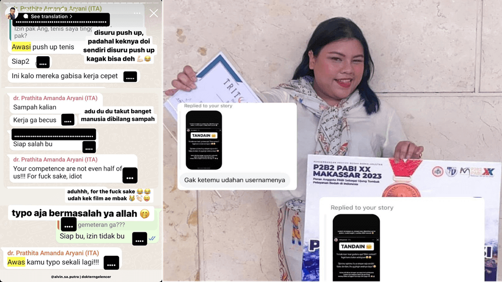 Bahkan kelasahan typo junior di grup chat Whatsapp-pun di permasalahkan oleh Prathita Amanda Aryani dari foto chat Whatsapp yang beredar.