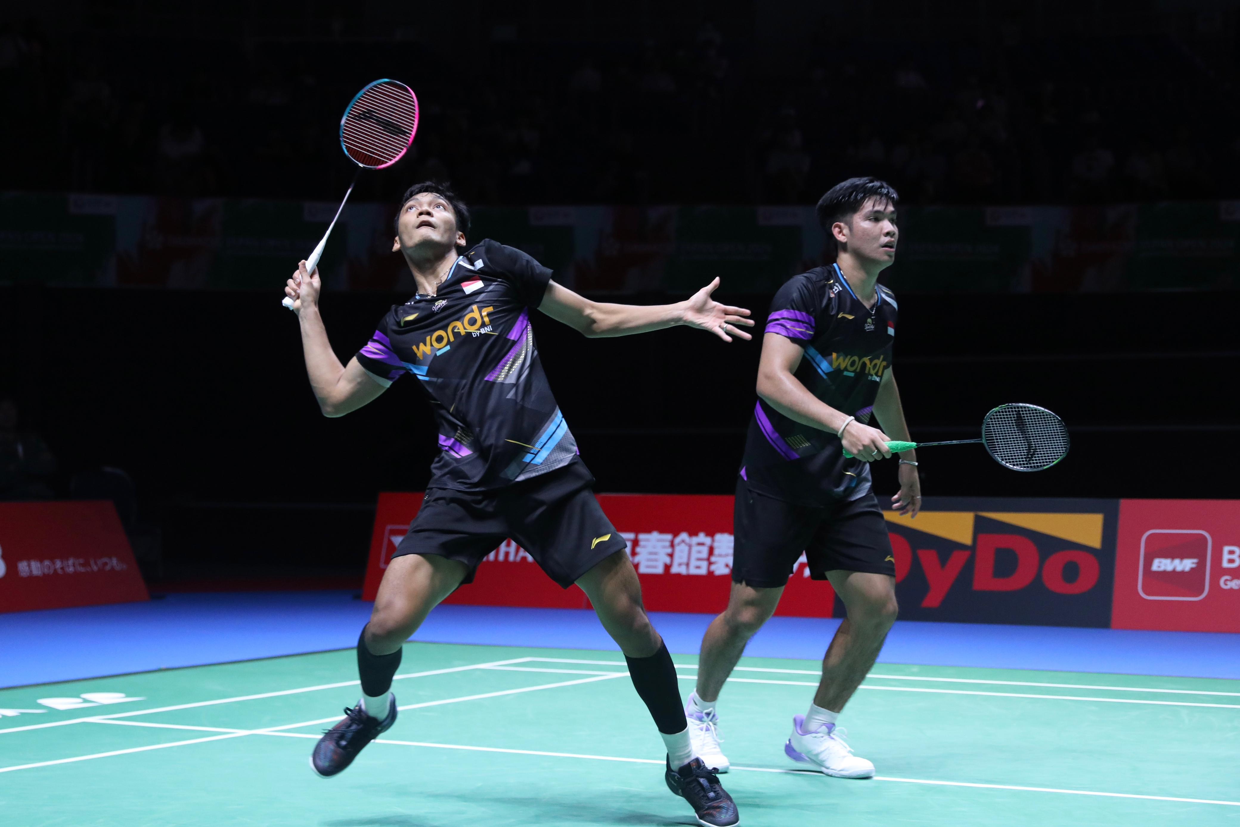 Ganda putra Indonesia Fikri/Daniel lolos ke babak 16 besar usai atasi perlawanan wakil Taiwan. Chiang Chien Wei/Wu Hsuan Yi dipaksa menyerah dengan skor identik 21-19, 21-19 di Lapangan 2 Yokohama Arena Rabu (21/8).