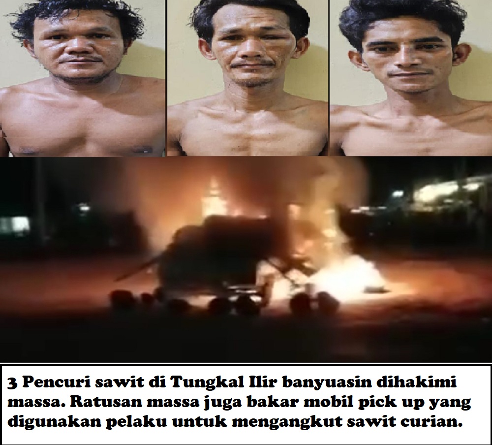 Keterangan yang dihimpun, aksi massa itu merupakan puncak kekesalan terhadap pelaku pencuri sawit yang sudah lama dicurigai warga.