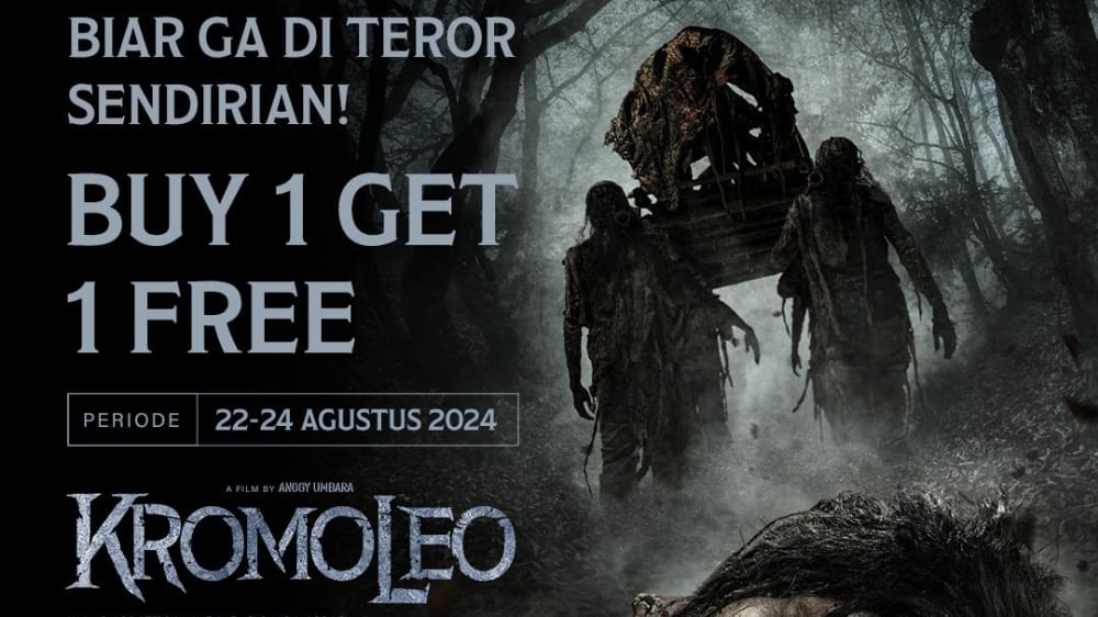 dapatkan promo buy 1 get 1 free untuk film kromoleo mulai tanggal 22-24 agustus 2024. segera pesan tiketnya!