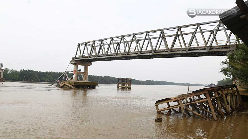 Kondisi Jembatan Lalan yang ambruk ditabrak Tongkang.gbr.bacakoran--
