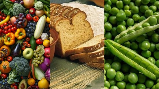salah satu makanan berserat yang cocok untuk diet sehat diantaranya yaitu: roti gandum utuh, sayuran, buah, dan kacang polong.