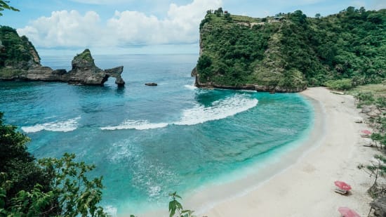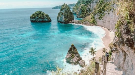 nusa penida ini menjadi hype karena kaya akan view yang indah seperti, tebing dengan berbagai bentuk, air laut jernih yang berwarna turquoise, dan pantai berpasir putih yang alami.