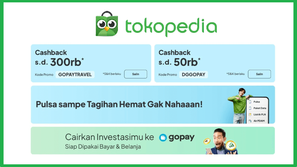 kamu bisa produk digital dapat cashback rp50.000 dengan kode promo voucher tokopedia gopay.