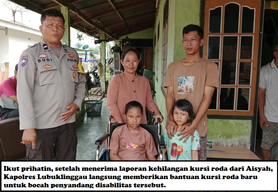 Petugas kemudian langsung merespon dengan memberikan bantuan kursi roda baru untuk korban Aisyah.