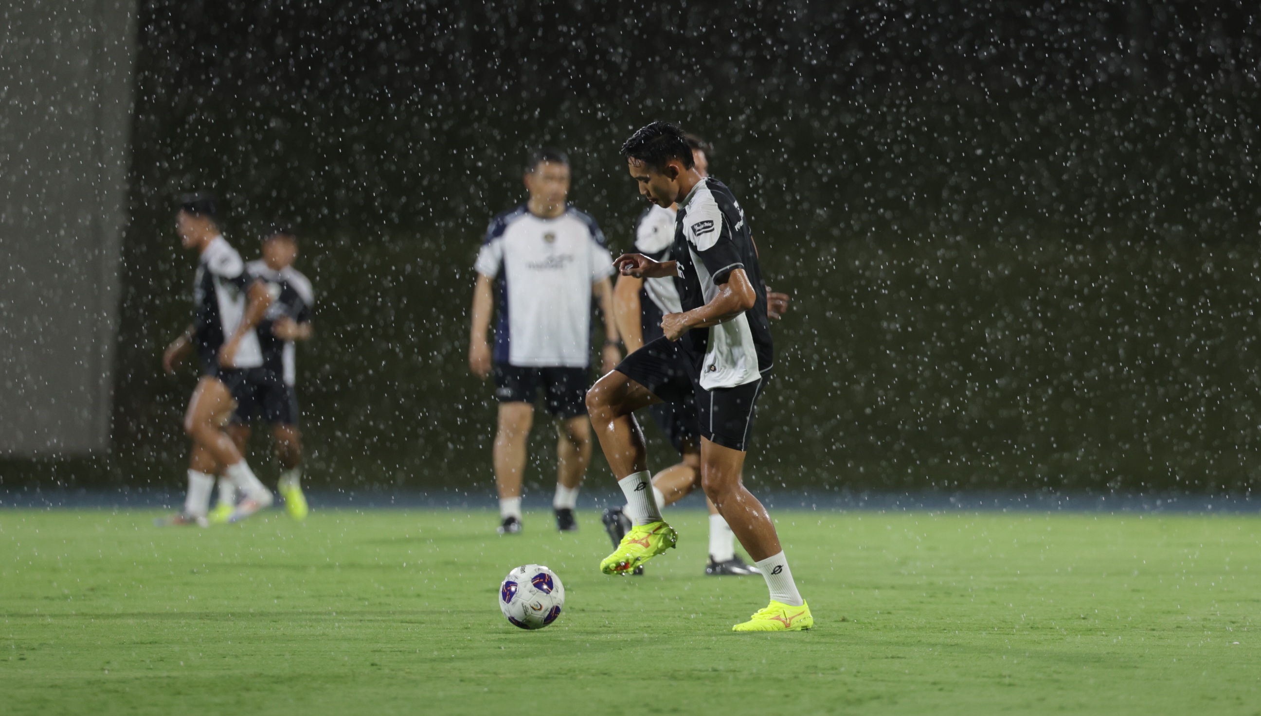 Rizky Ridho saat berlatih dbawah guyuran hujan-pssi-