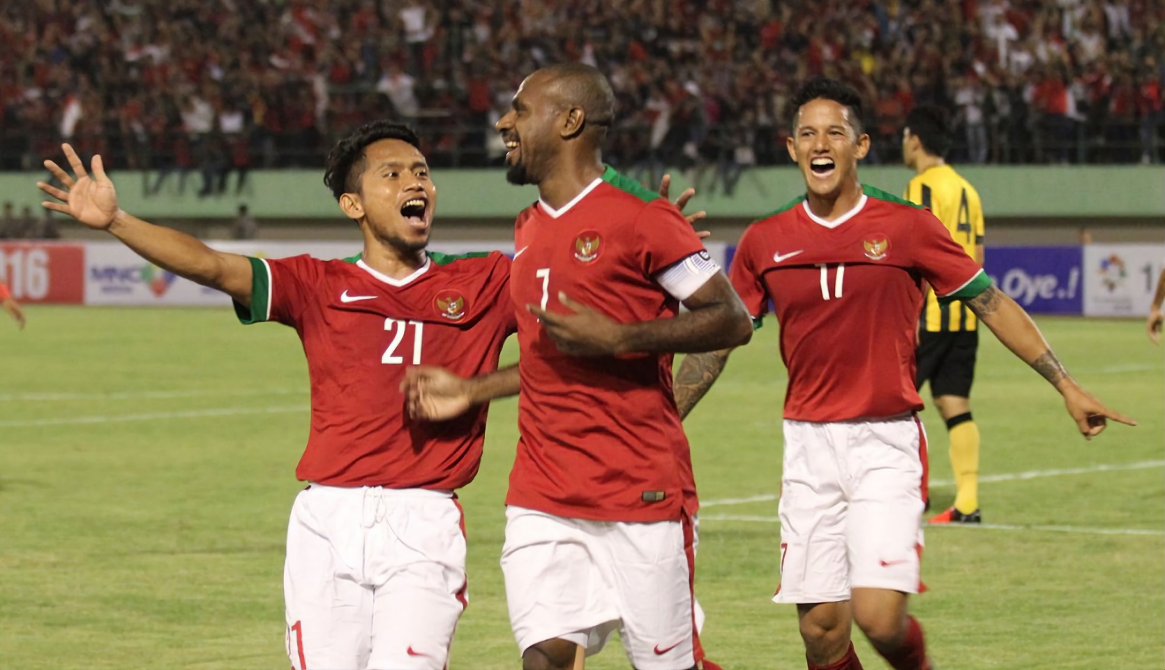 Selebrasi Boaz Solossa usai cetak gol saat bela Timnas Indonesia -pssi-