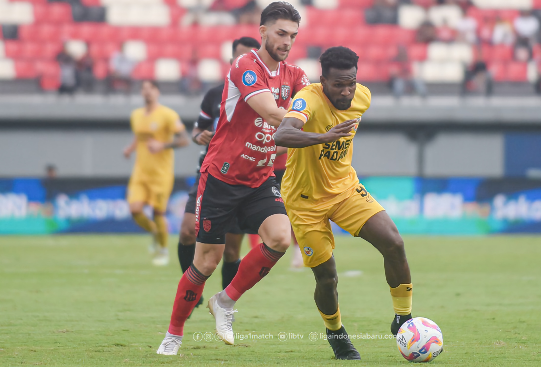 Pergerakan penyerang Semen Padang dapat kawalan ketat pemain Bali United di Liga 1 -lib-
