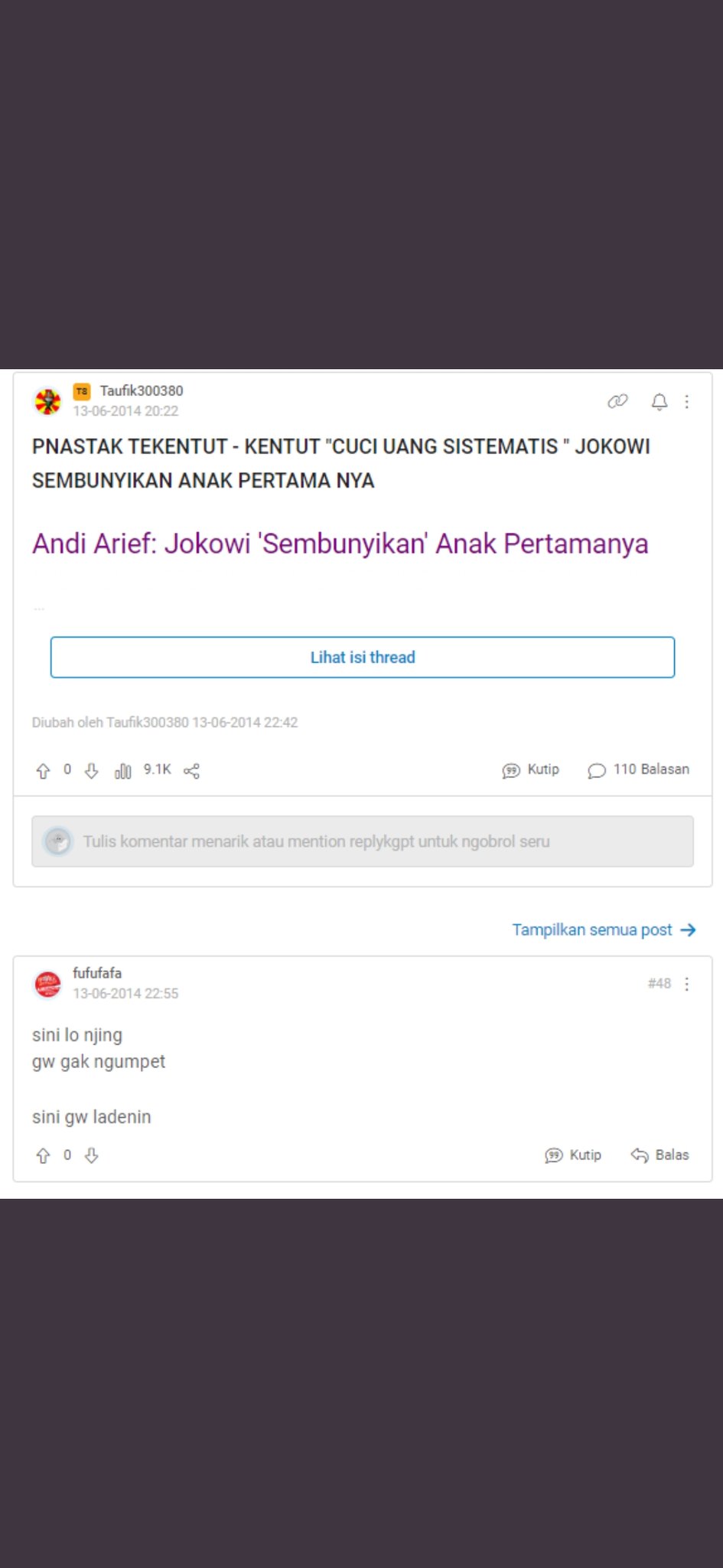 setelah dilakukan penelusuran lebih lanjut, banyak pengguna media sosial yang kembali membagikan postingan dari akun kaskus fufufafa.