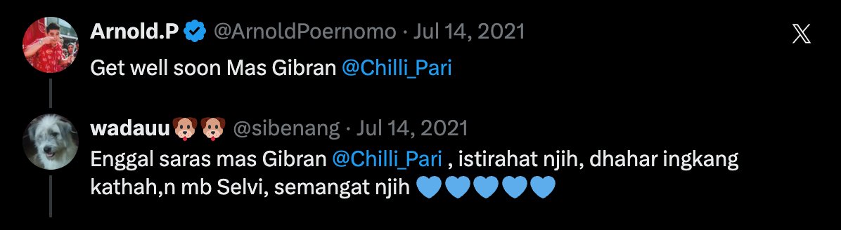 namun menarinya chef terkenal indonesia arnold poernomo keciduk netizen mention ke akun x @chili_pari pada 14 juli 2021, yang menunjukan bahwa akun tersebut dikelola oleh presiden terpilih gibran rakabuming sendiri.