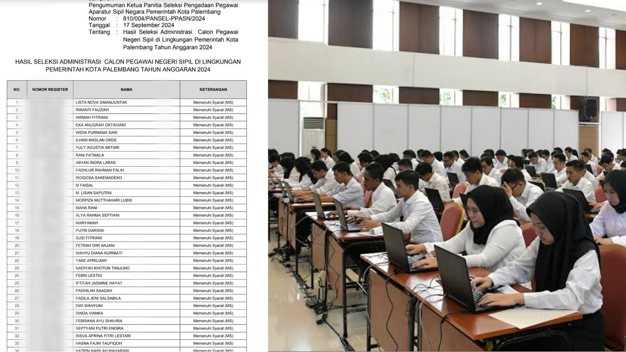 Ini data dan link hasil seleksi administrasi di pemkot Palembang CPNS 2024--Kolase Bacakoran/https://bkpsdm.palembang.go.id