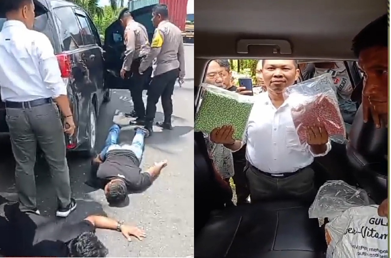 Vidio Penangkapan itu viral di media sosial, terlihat aparat kepolisian dari Polres Indragiri Hulu, mengamankan sejumlah barang bukti yang diduga berupa narkoba