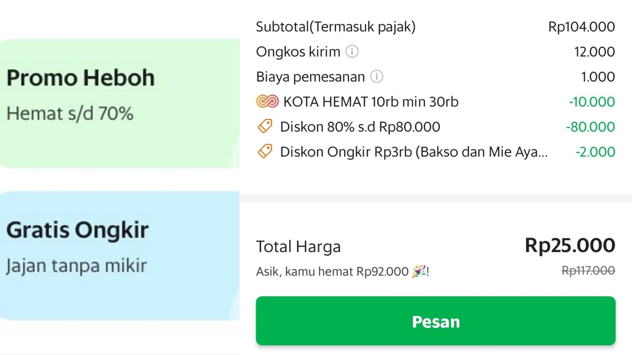 kupon grabfood hemat ekstra 70% untuk pesan menu favorit hari ini tanpa minimum transaksi tanggal kedaluwarsa: 05/09/2024.