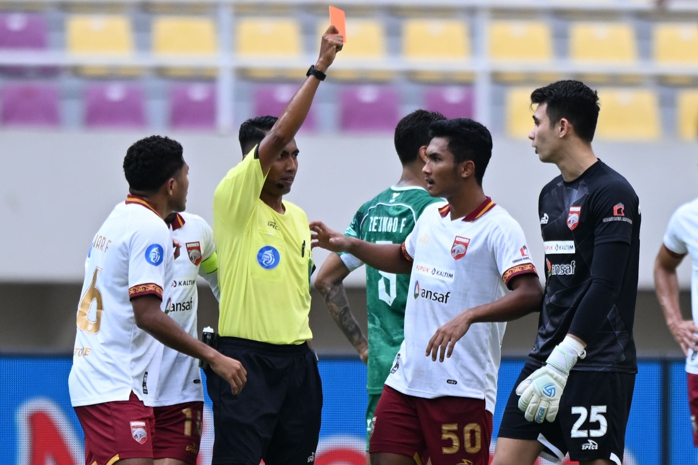 Nadeo Argawinata saat dapat kartu merah dari wasit dalam laga melawan PSS Sleman -borneo fc-