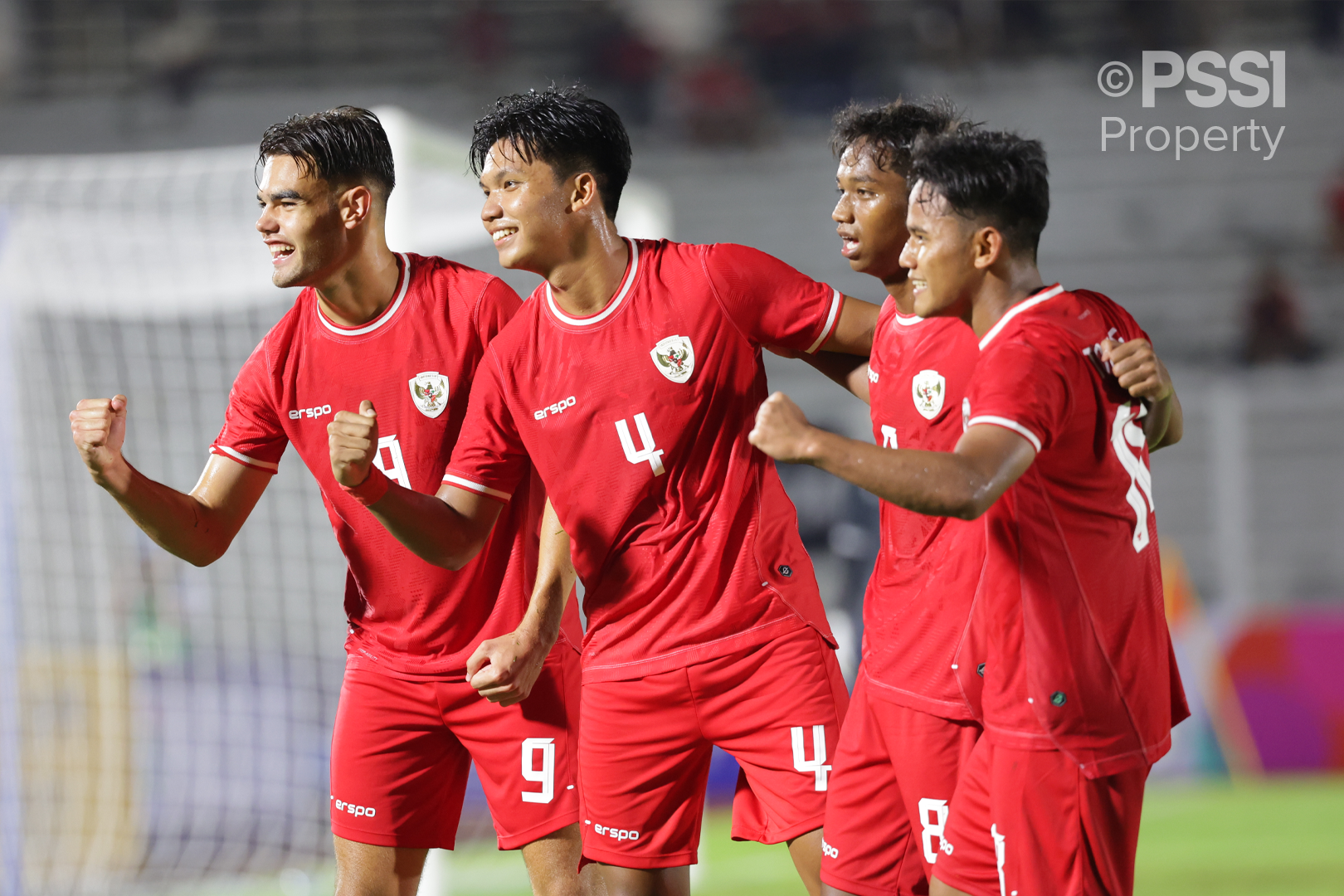 Pemain Timnas Indonesia U20 usai mencetak gol dalam Kualifikasi Piala Asia U20 2025 -pssi-