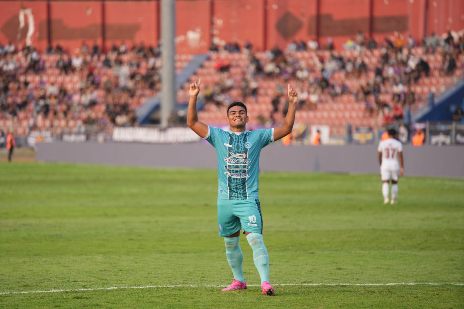 selebrasi alexandro ferreira usai cetak gol ke gawang persik -psbs-