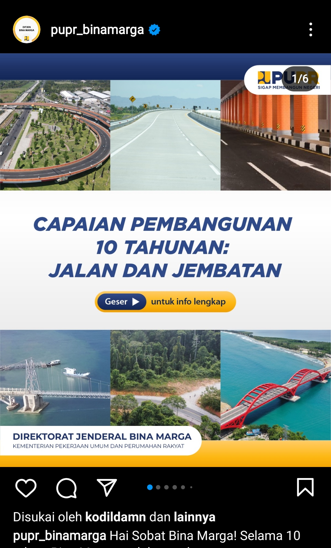 Pencapaian 10 tahun pembangunan di Pemerintahan Jokowi--Instagram/pupr_binamarga