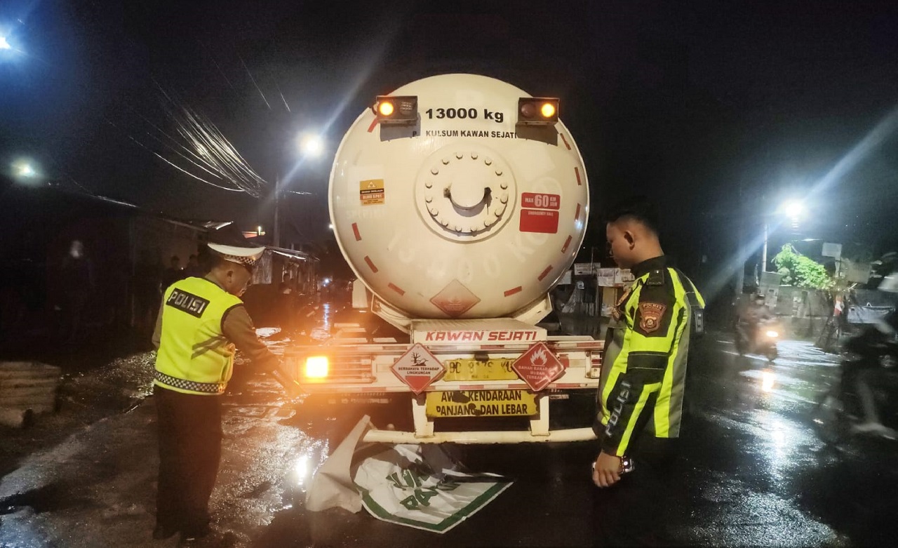 Nah diduga ketika itulah mobil truk tangki menyenggol sepeda motor yang di kemudikan Talimin sehingga sepeda motor terjatuh ke aspal dan tubuh Talimin terlindas ban mobil truck tangki tersebut.