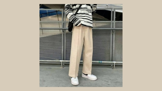 celana wide leg ini memberikan kamu dimensi dan struktur pada keseluruhan tampilan agar terlihat lebih modern dan edge dengan perpaduan kemeja yang stylish untuk cowok.