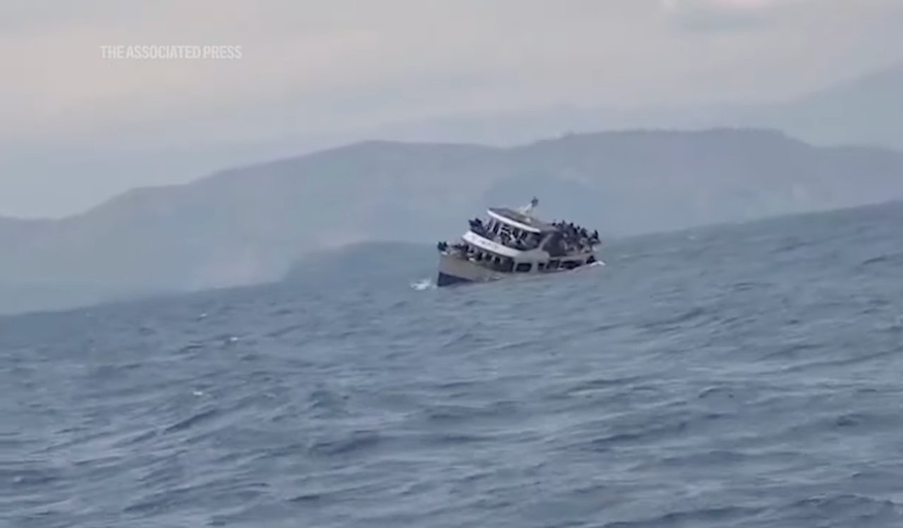 sebuah video yang beredar di media sosial menunjukkan detik-detik saat kapal terbalik dan tenggelam tidak jauh dari pelabuhan.