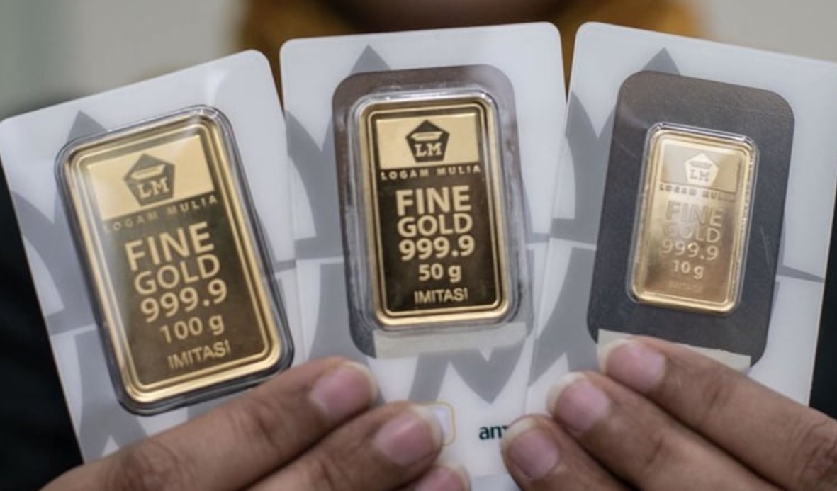 BACAKORAN.CO – Harga emas Logam Mulia 24 karat dari PT Aneka Tambang Tbk (Antam) turun tajam.