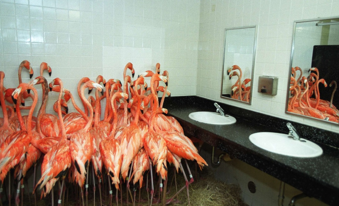 1000 hewan terjebak di kebun binatang Tampa, tak ikut dievakuasi saat badai Milton dengan kekuatan dahsyat menghantam Florida, AS. Tampak burung Flamingo dimasukkan ruang tertutup seperti toilet.--istimewa