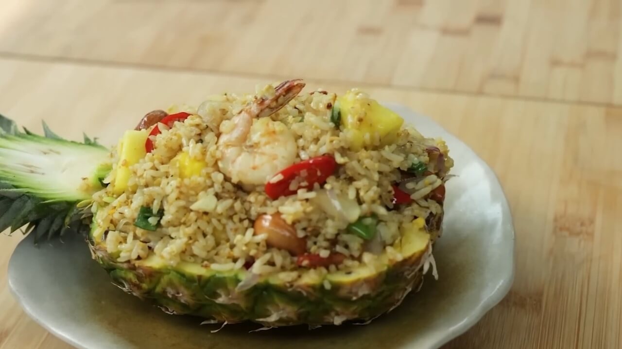 Nasi goreng nanas biasanya dihidangkan di restoran masakan Thailand dan seringkali menggunakan bubuk kari sebagai bumbu utama.