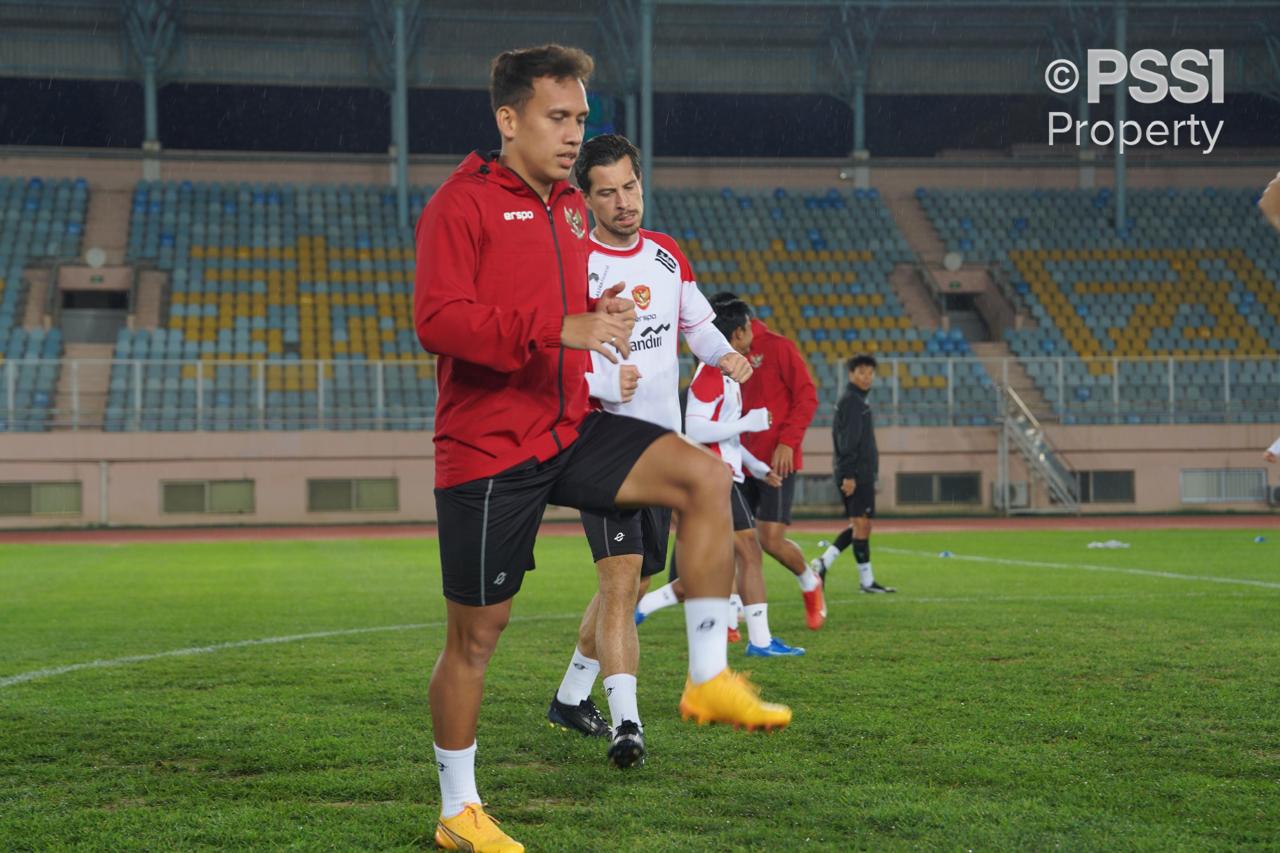 Pemain Timnas Indonesia saat latihan di China-pssi-