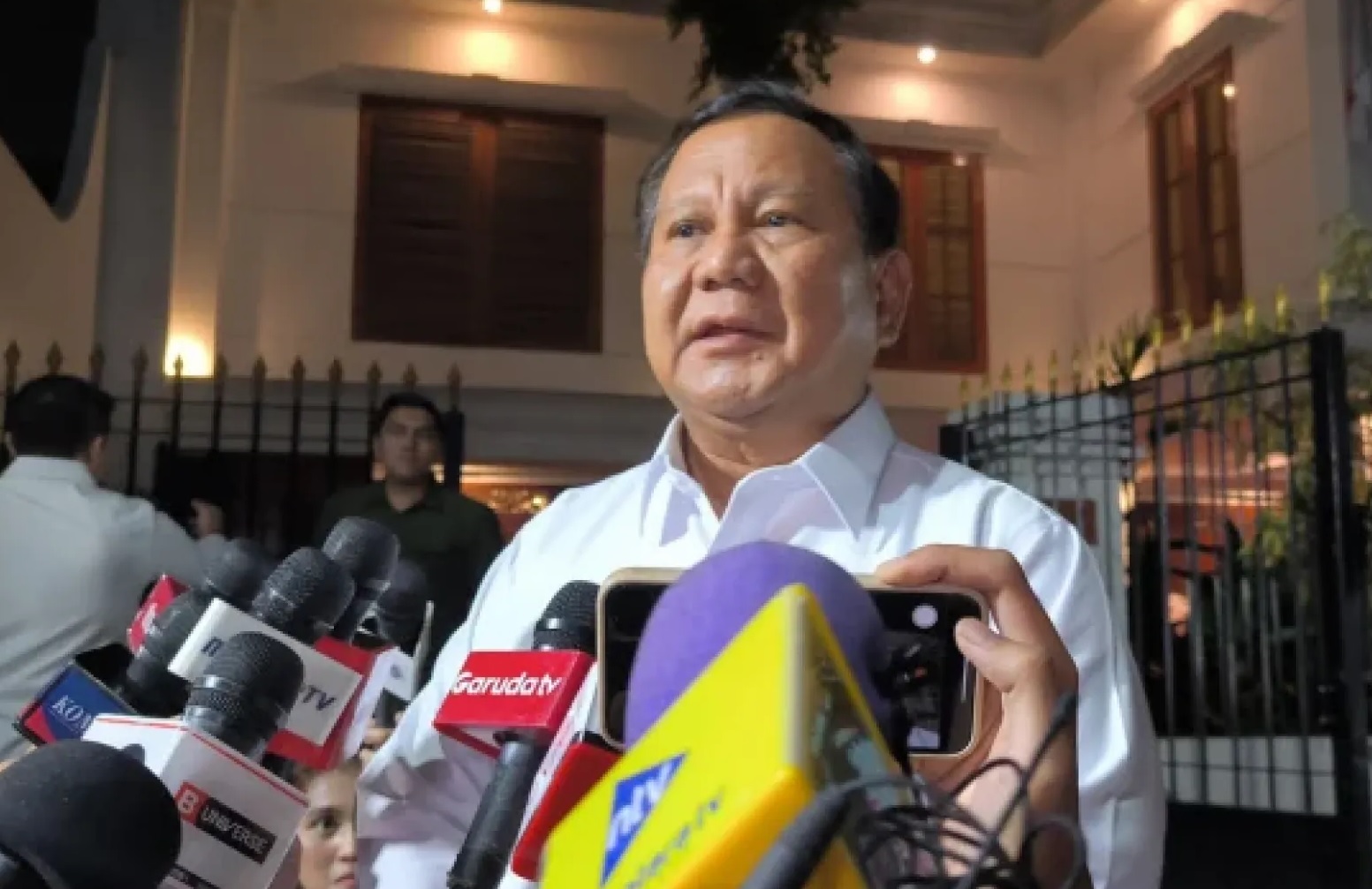 Prabowo Subianto berikan keterangan kepada media usai lakukan pemanggilan para calon menteri pada hari pertama di kediamannya.--istimewa